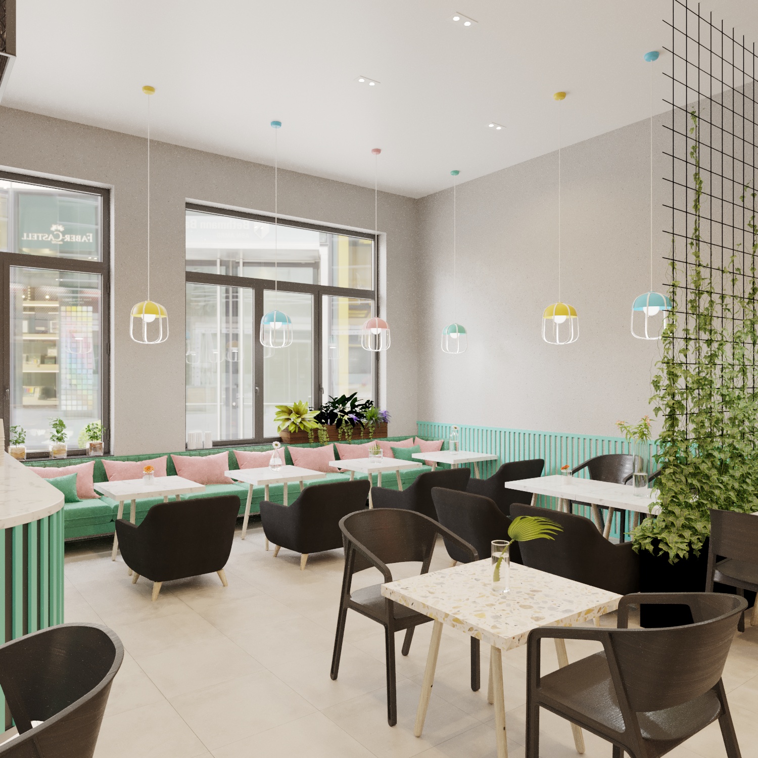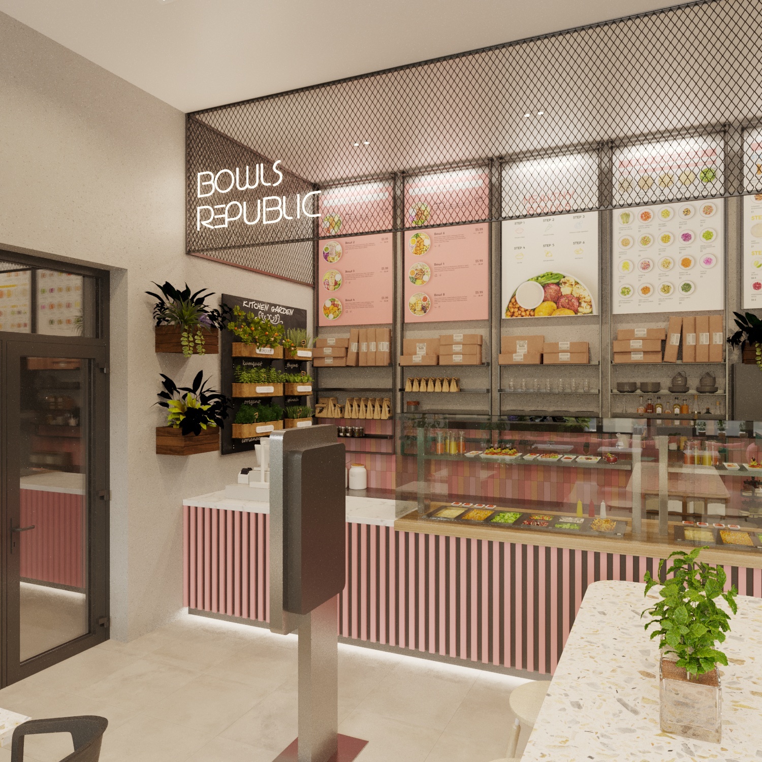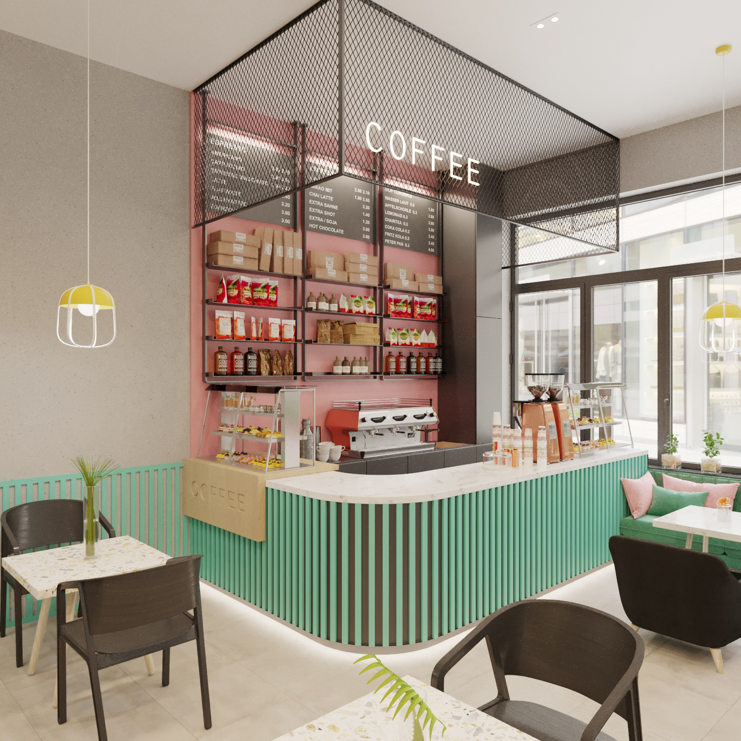 After developing the brand book, we set about designing the interior of the establishment. We prepared drawings and sweepings and developed a 360° rendering.