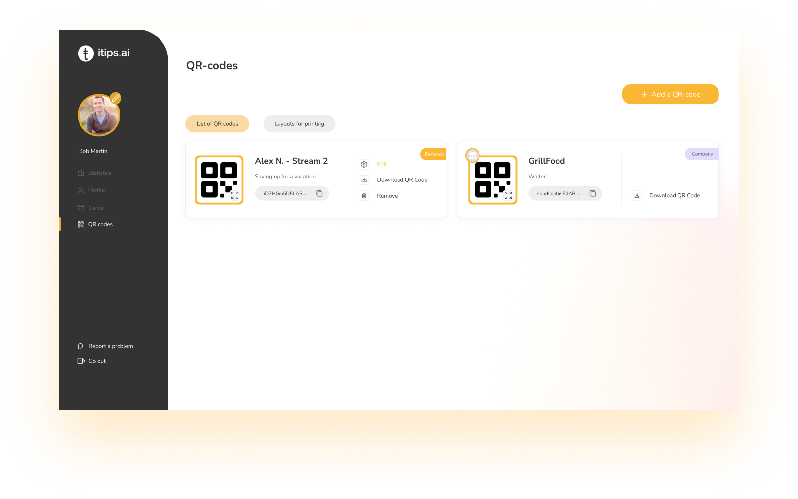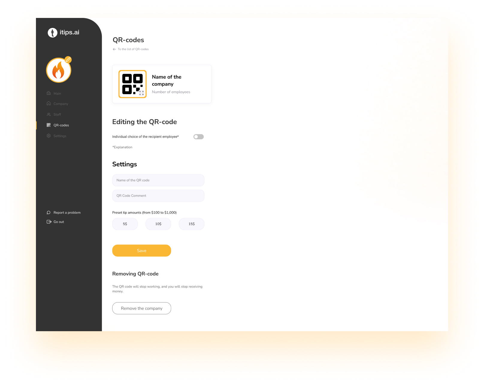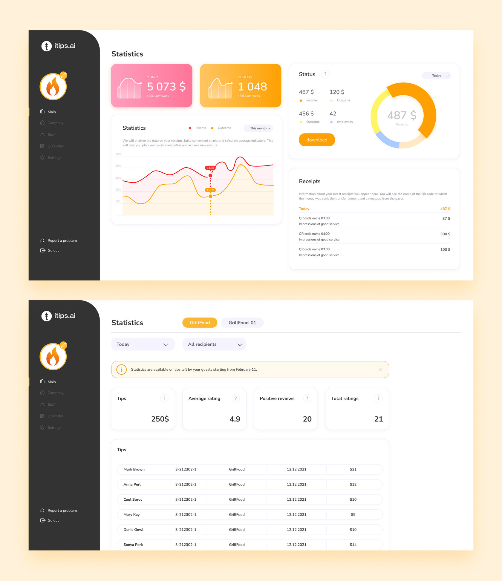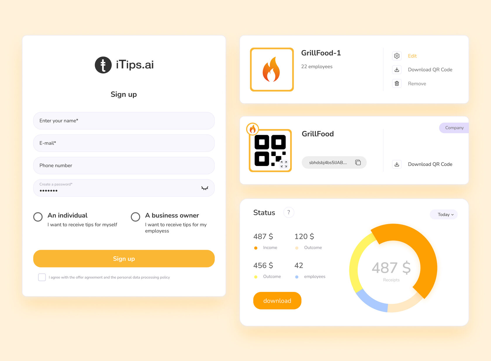 iTips.ai is a tipping service that helps businesses conveniently distribute the establishment's income to employees, study statistics and improve service. The platform is also designed for musicians, bloggers, small businesses, and large corporations to generate additional income online.
